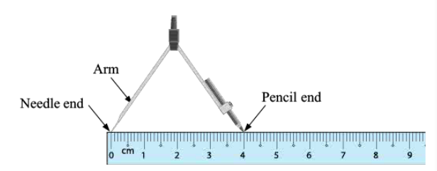 Place the needle of the compass at point D and make an arc with the pencil end marking the point X.