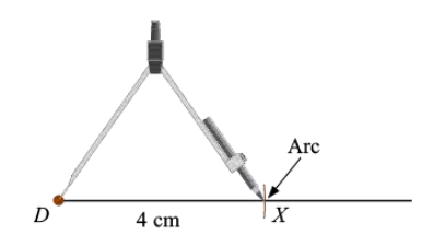 Place the needle of the compass at point D and make an arc with the pencil end marking the point X.