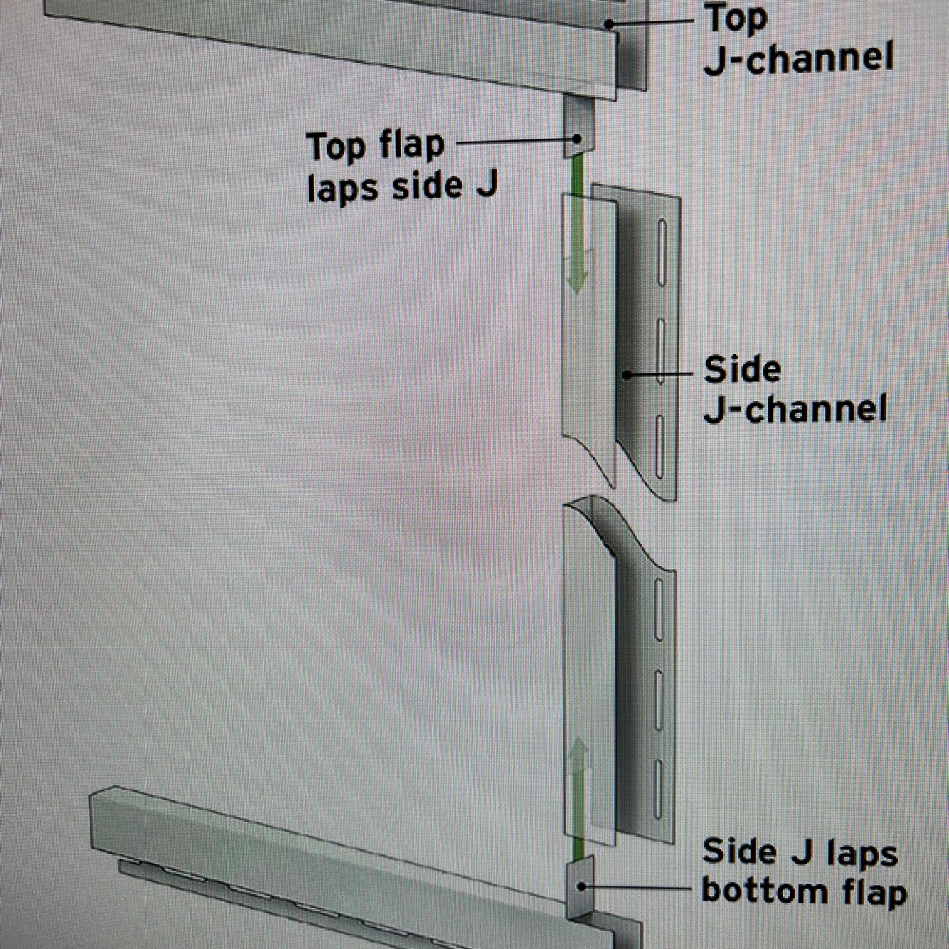 This is a J channel trim. It is installed on three sides of a door and all around the window when installed on a window the J channel is cut and aligned with the window casing.