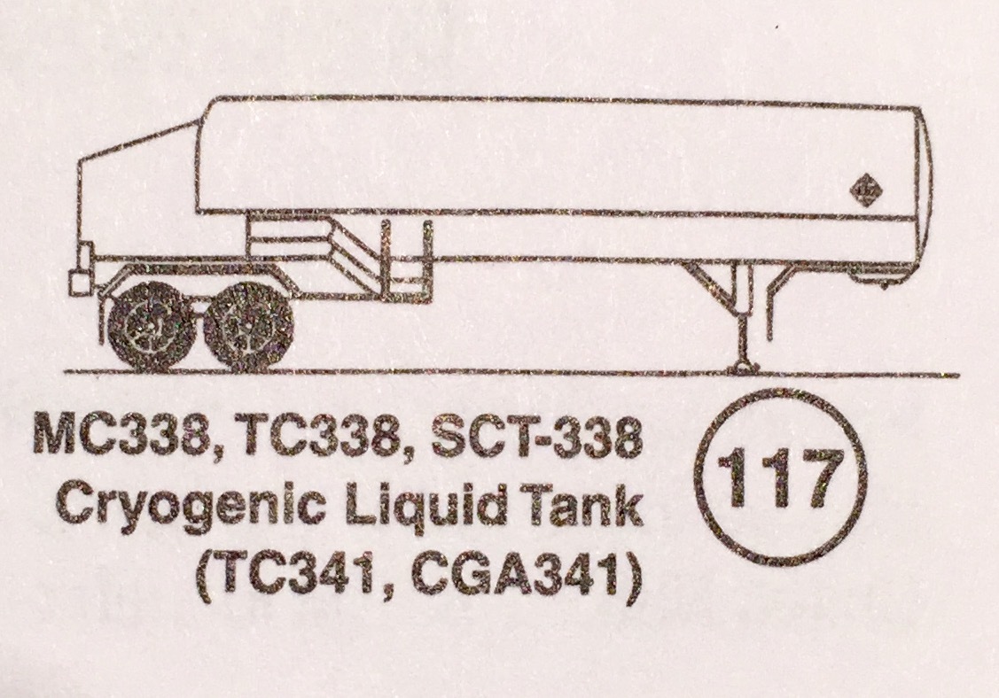Look for Spill rail/Oval shape, upper recovery rail. DOT 406, TC 406, or SCT-306