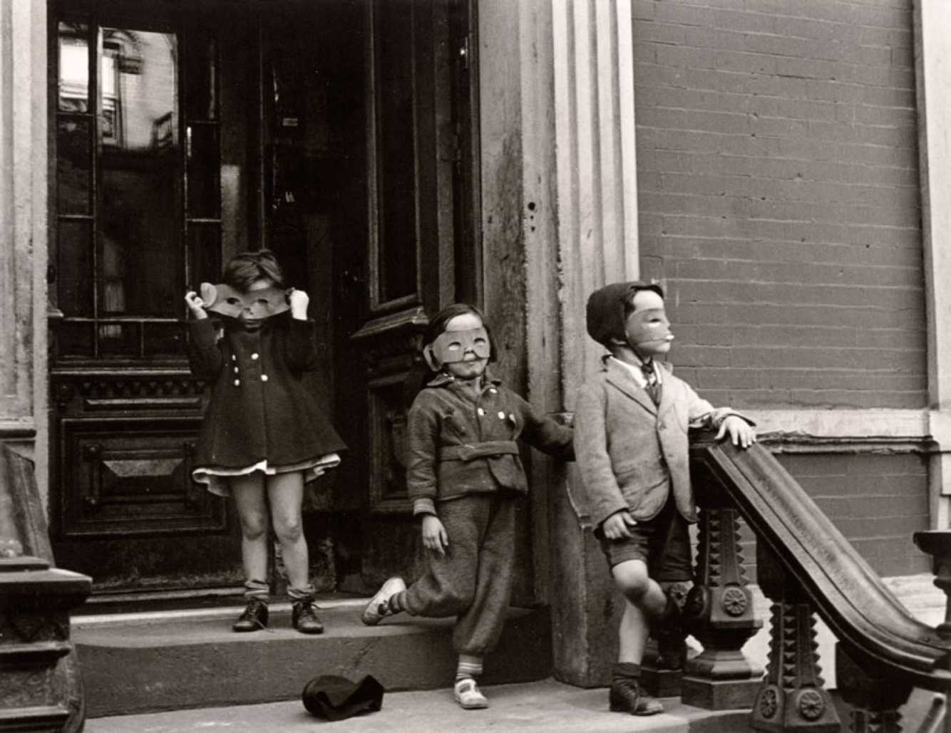 Helen Levitt, Masked Kids, Brownstone, 1945