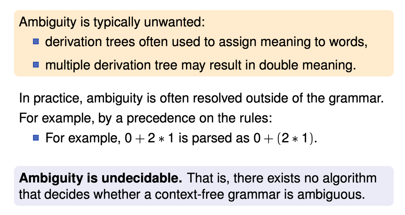 Why is ambiguity typically unwanted? Is it decidable?