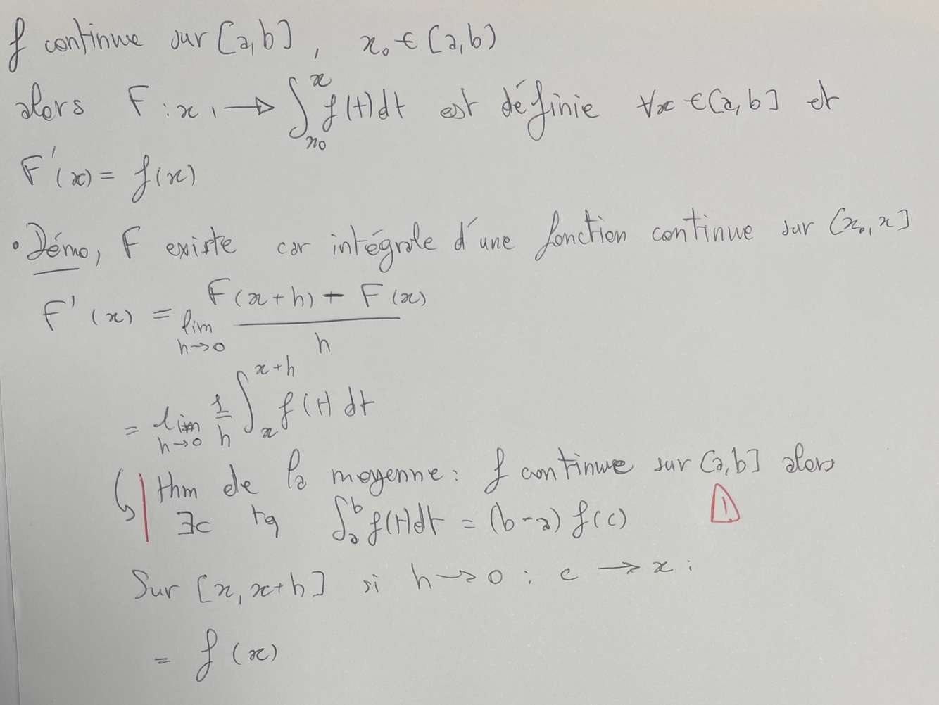 Énoncé et démontre le théorème fondamental (existence et dérivée)