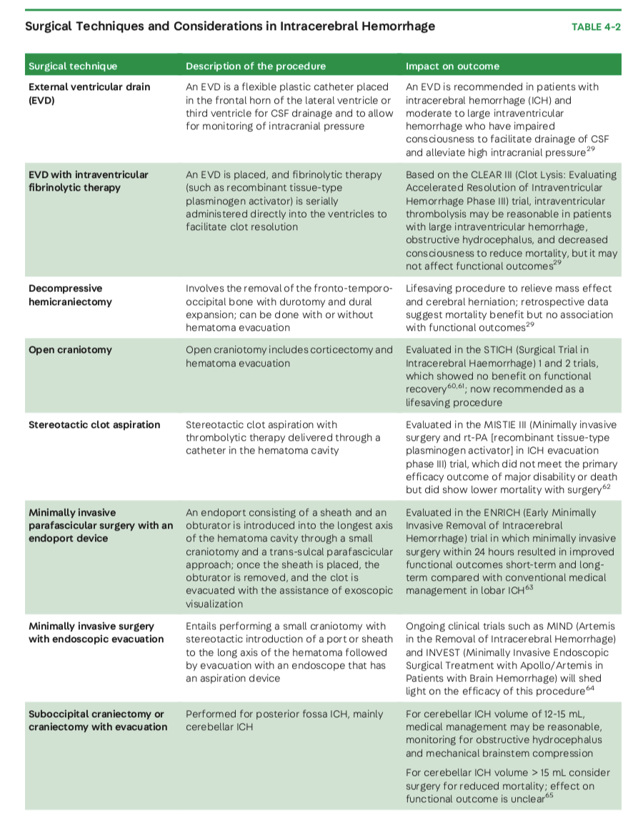 Quais foram os resultados dos estudos que avaliaram craniotomia nos paciente com ICH?