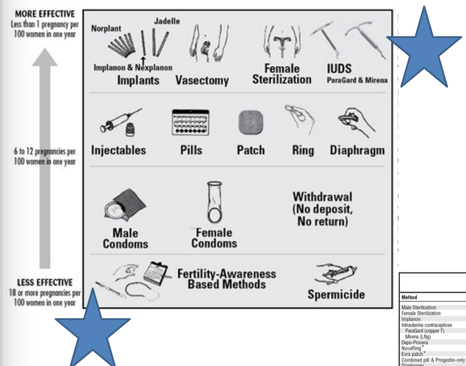 What are the 4 MOST effective contraception options