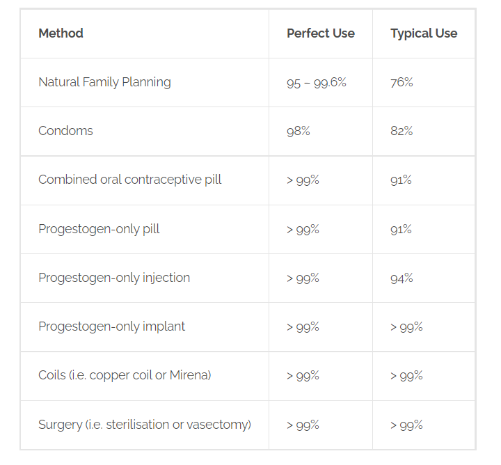 *NOTE: sterilisation has failure rate of 1 in 200, vasectomy has failure rate of 1 in 2000