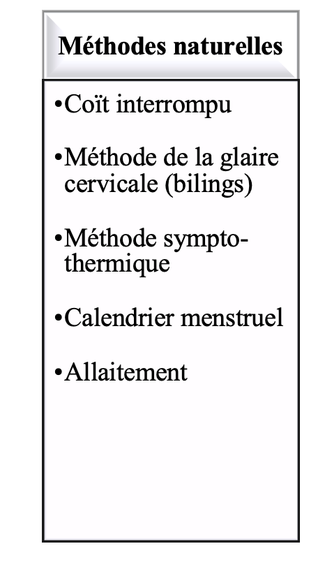 Classification des méthodes de contraception: Méthodes naturelles - nommez-les