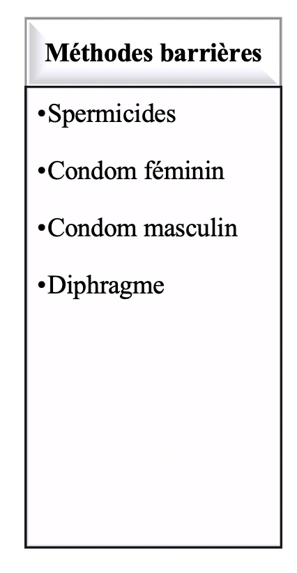 Classification des méthodes de contraception: Méthodes barrières - nommez-les