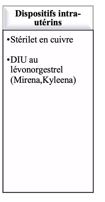Classification des méthodes de contraception: Dispositfs intra-utérins - nommez-les