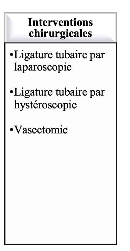 Classification des méthodes de contraception: Interventions chirurgicales - nommez-les