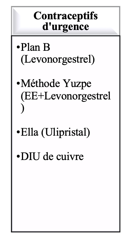 Classification des méthodes de contraception: Contraceptifs d’urgence - nommez-les