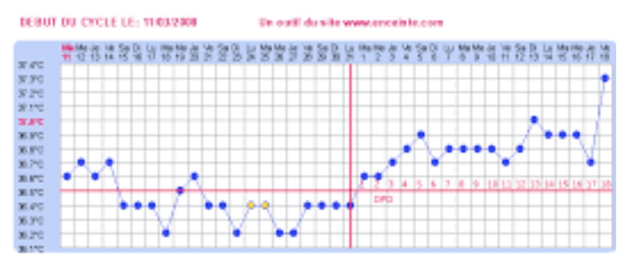 Lorsque la femme ovule, la sécrétion de progestérone fait augmenter la température basale de 0,2 à 0,4°C.