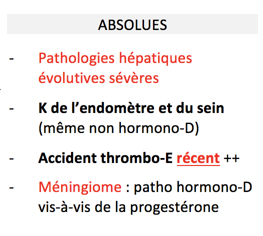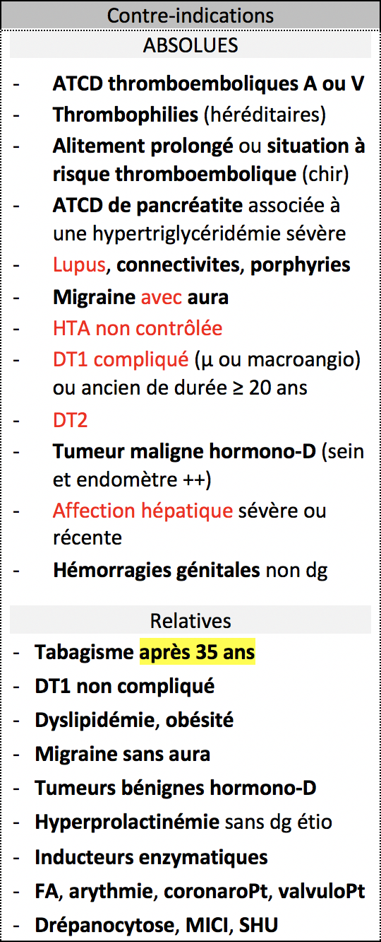 Contre-indications des œstroprogestatifs