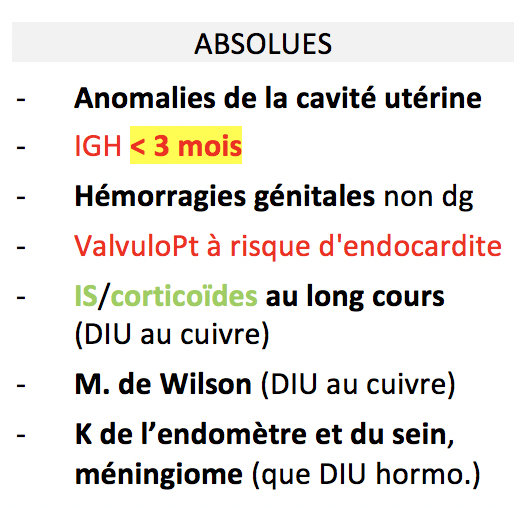 Contre-indications des DIU