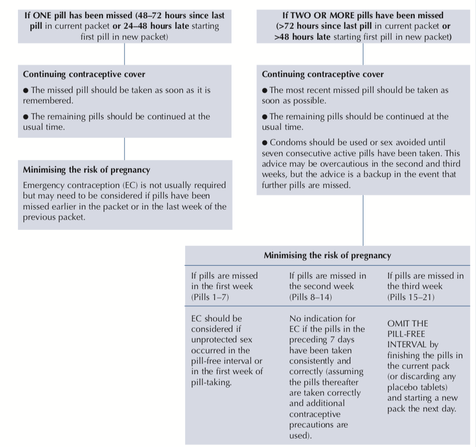 How would you advise a woman that has missed 2 or more COC pills?
