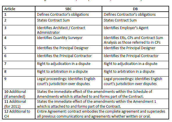 The contractors obligations are identified in clause 2.2 of the JCT SBC and clause 2.1 of the JCT DB contract.