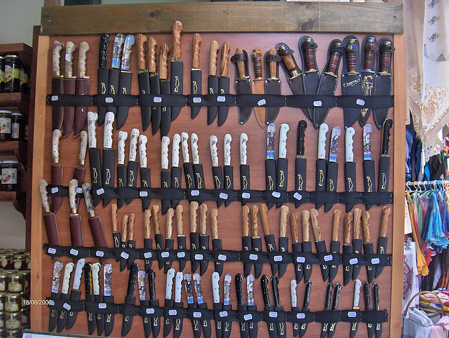 Offering for sale an offensive weapon - flick knife in window - no ‘offer’.