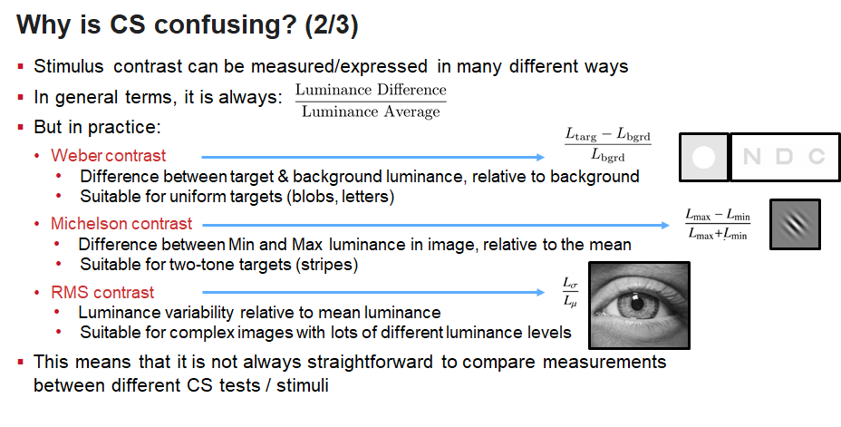 “Confusingly though, CS often is treated as if it is one number(!) – “their Pelli-Robson score was 1.7””