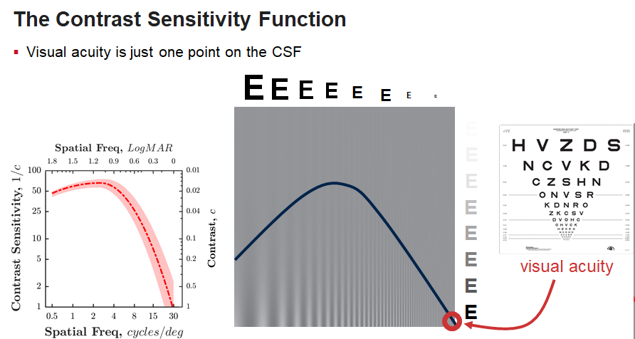 It is important because in real life need to be able to see large, faint objects (i.e., CS), as well as fine spatial detail at high contrast (i.e., acuity)