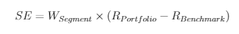 The Selection Effect measures the ability of the manager to select the right securities in a segment (e.g. sector).