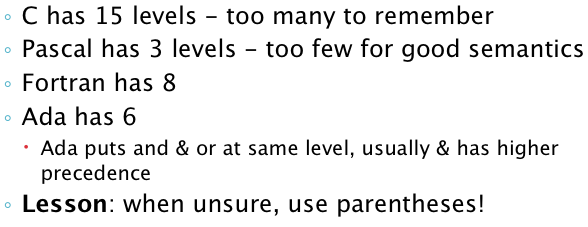 Precedence Associativity