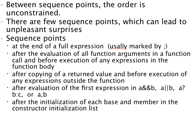 C, C++ define “sequence points” that constrain order of evaluation. What happens between sequence points?