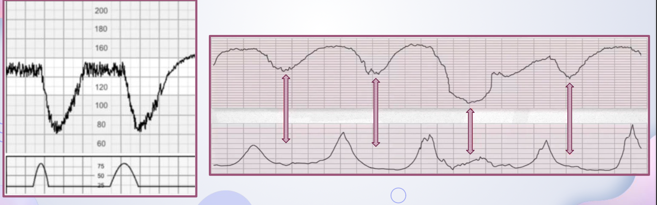 ➢ Se asocian a la contracción uterina → el nadir de la desaceleración coincide con el acmé de la CU.