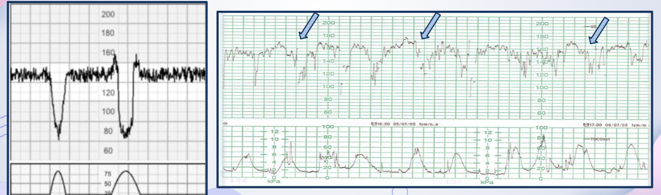 ➢ Se producen por una respuesta mediada por barorreceptores ante el ↑↑↑ transitorio de la Po art fetal,