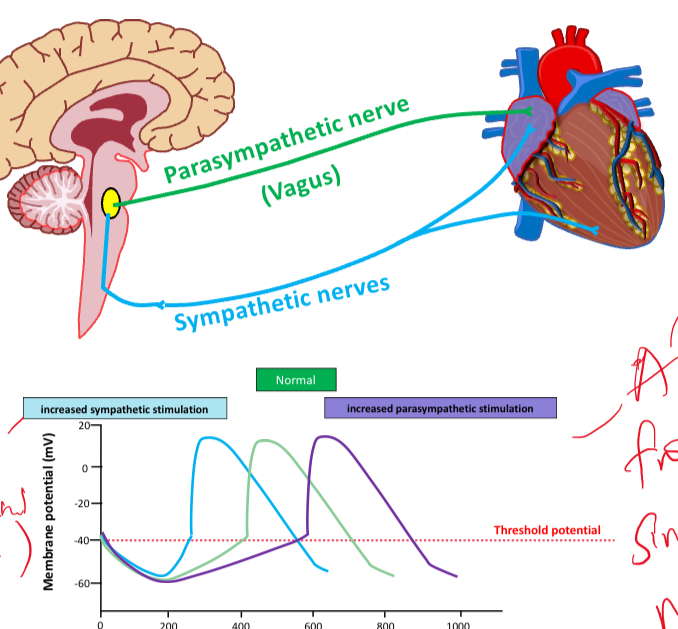 Controls heart activity by influencing heart rate and contractility