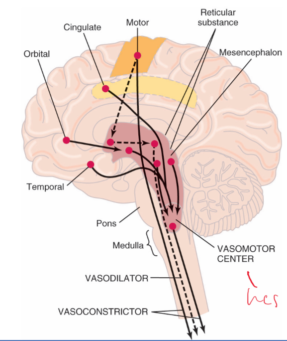 What other areas of the brain infleunce the vasomotor area?