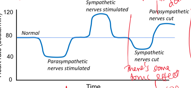 As parasympathetic nerve and sympathetic nerve being cut causes The heart rate to be above normal