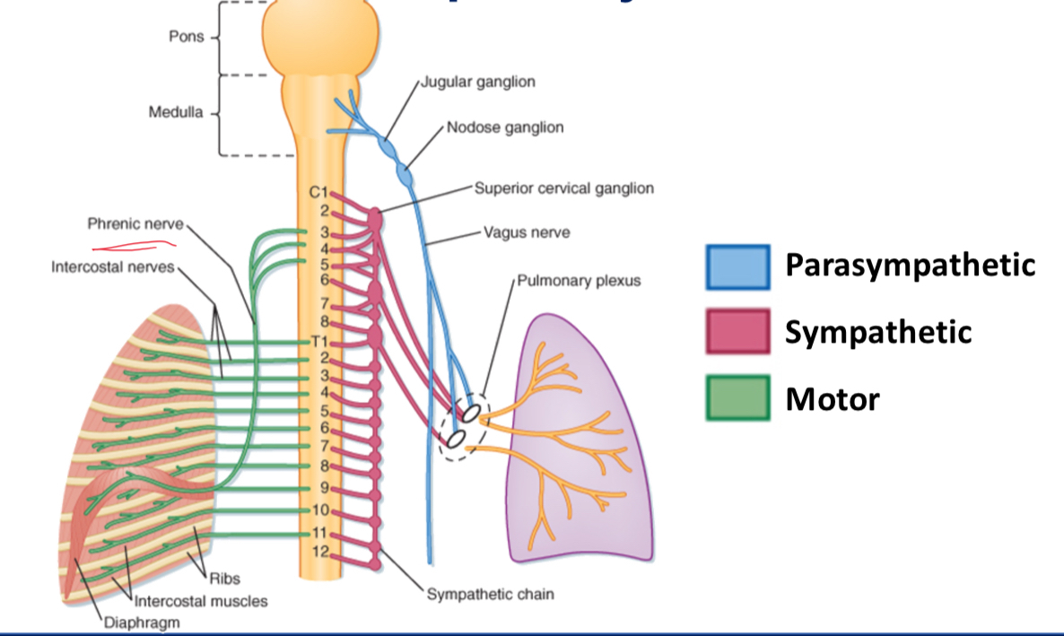 send afferent signals to respiratory centres- inhibits DRG and Apneustic centre