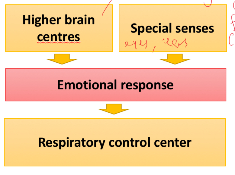 Special sensory like ears and eyes. E.g. loud sound or fire shouted will increase breathing rate