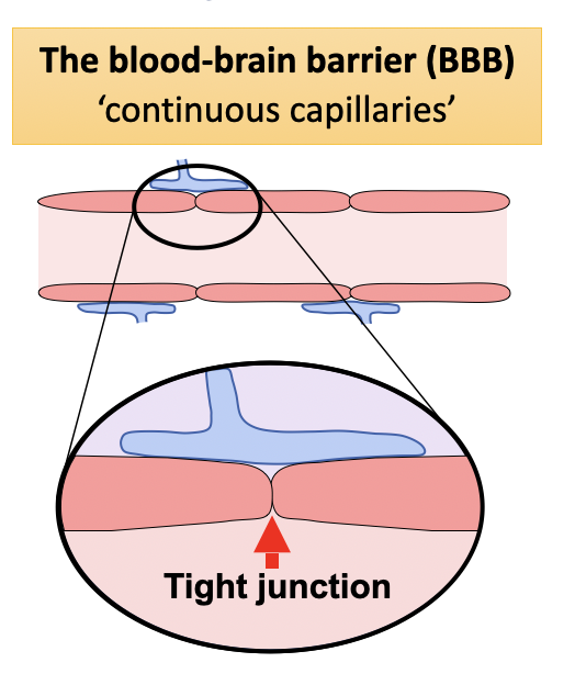 What kind of vessel walls do you have along the blood brain barrier?