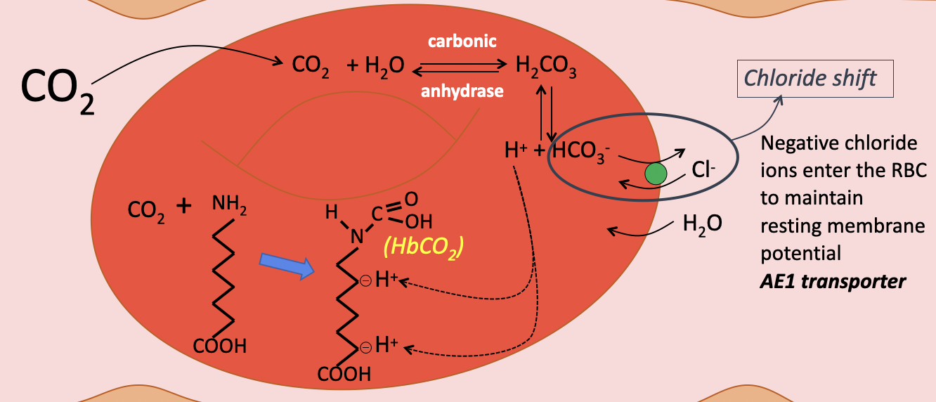 What occurs to chloride ions as carbonic acid dissociates in blood cells?