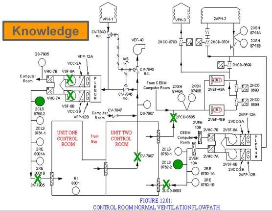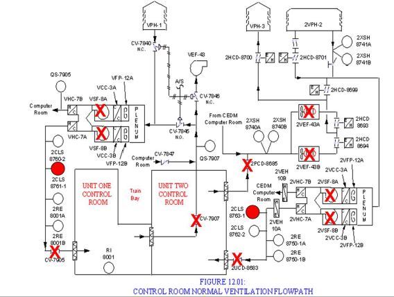 > 190 deg F a white annunciator light “charcoal filter heat detector” will illuminate on C141-03 and brings in K16 alarm. Must be reset using PB-3. At 300 deg F over length of sensor wire, input is provided into fire protection system C463 for charcoal filters.