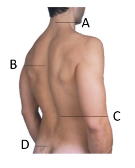 Of the 4 labelled curvatures of the vertebral column, which two are lordoses?
