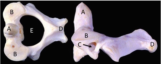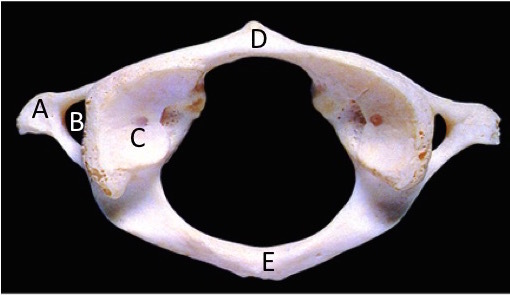 Posterior arch - The posterior arch (E) is longer than the anterior arch (D).