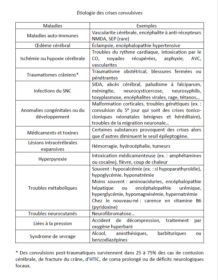 Connaître les possibles étiologies des crises convulsives