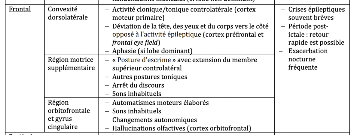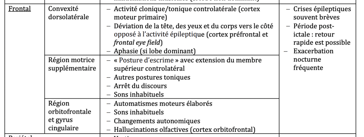 Crises épileptiques: Manifestations cliniques - Crises focales LOBE FRONTAL CONVEXITÉ DORSOLATÉRALE