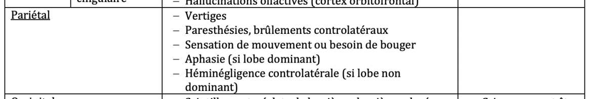 Crises épileptiques: Manifestations cliniques - Crises focales LOBE PARIÉTAL