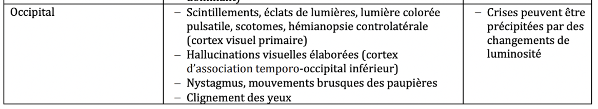 Crises épileptiques: Manifestations cliniques - Crises focales LOBE OCCIPITAL