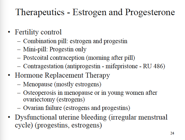 feedback inhibition on the pituitary inhibits gonadotropin release. While there are many different formulations, the estrogen in these pills is typically ethinyl estradiol or mestranol and the progesterone is typically noerthindrone, norgestrel, or levonorgestrel