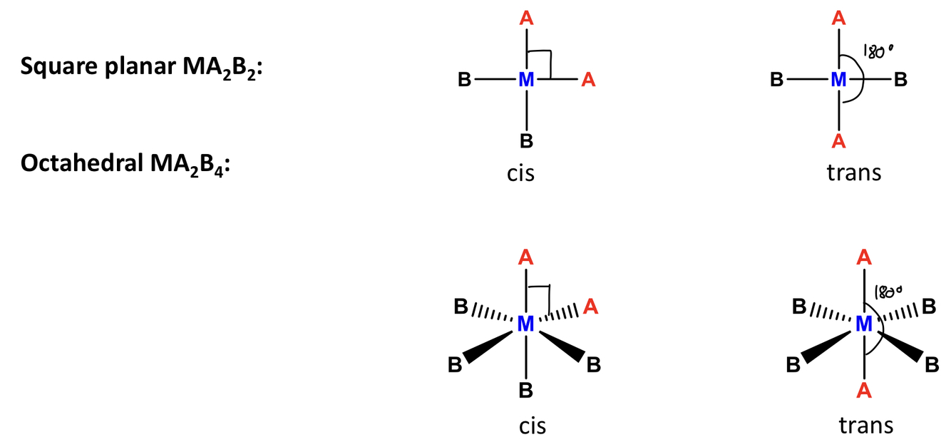 What are the monodentate geometric isomerism in square planar & octahedral geometries?