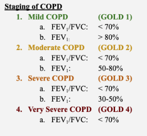 GOLD 4 (Very Severe): FEV1 < 30% predicted.