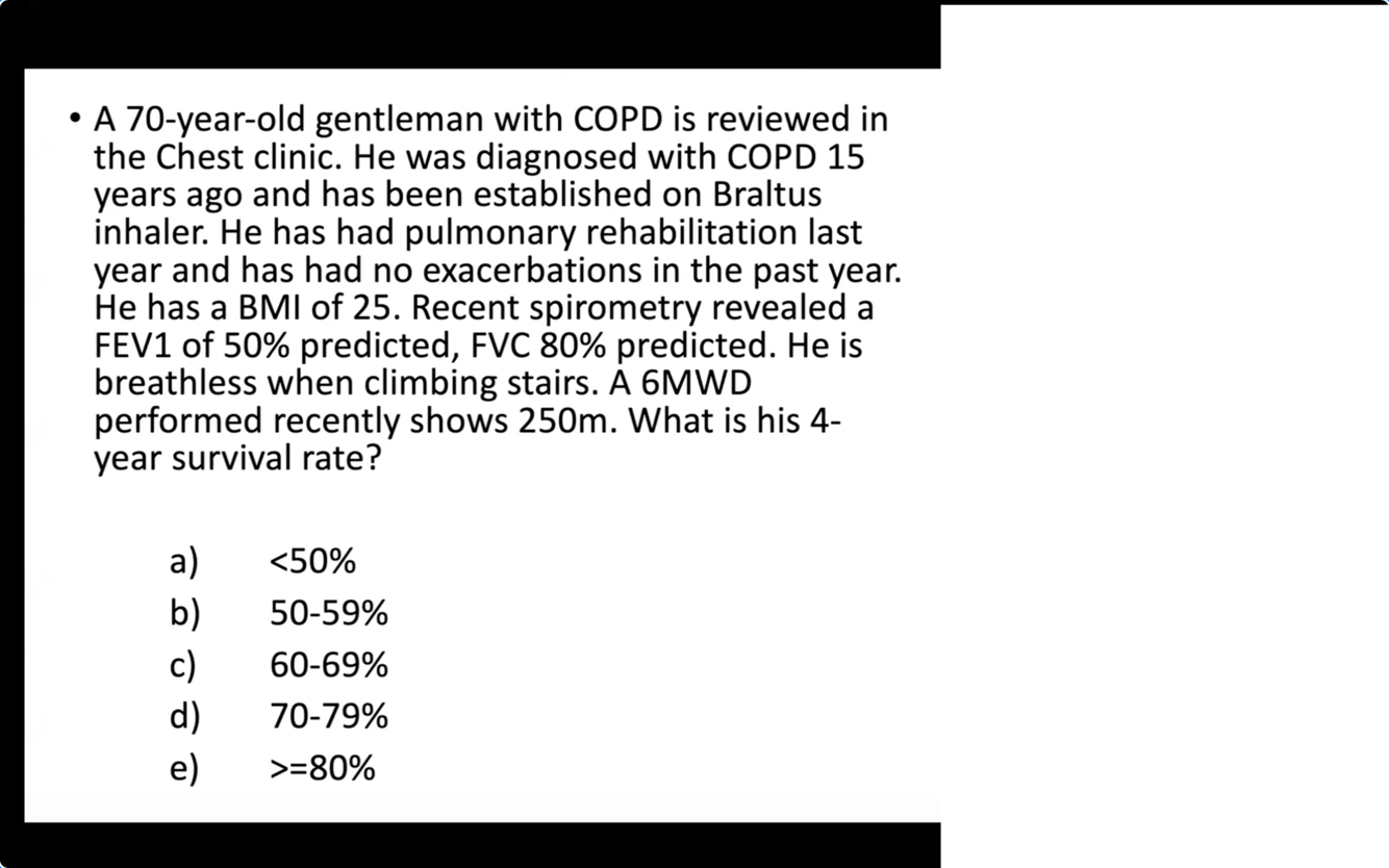 * Six minute walk distance >140m or Incremental Shuttle Walk Test >80m
