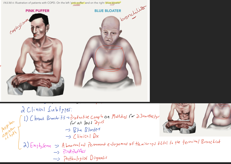 What are the clinical subtypes of COPD and what are their characteristic features?