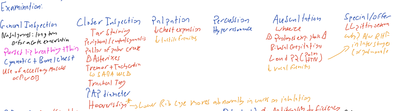 Describe the exam findings you would expect to find in a COPD patient.