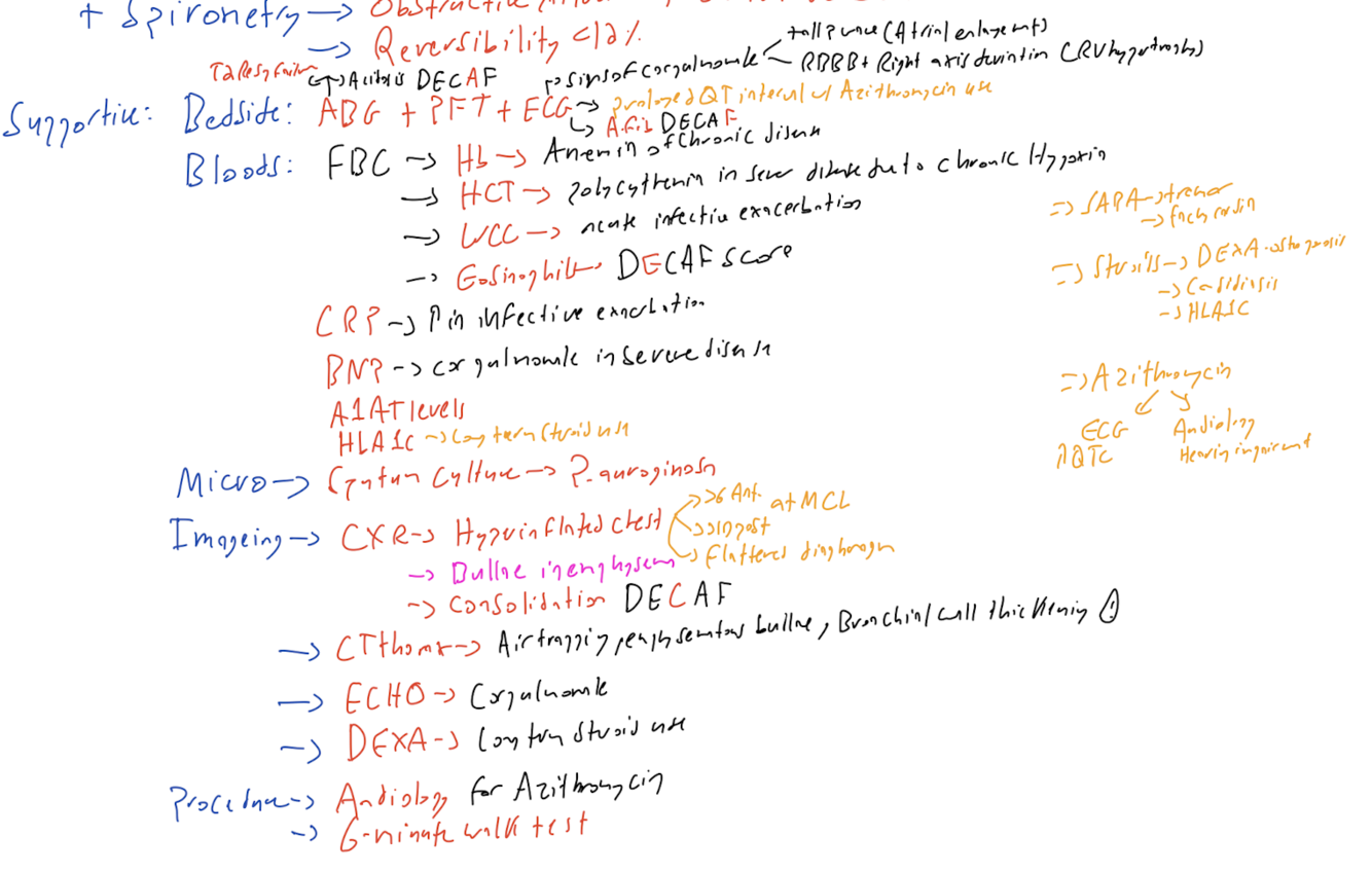 How would you investigate a patient with COPD? Justify each.