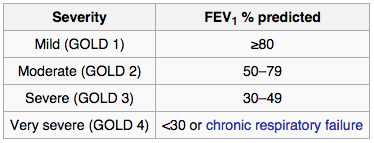GOLD grading of COPD severity on spirometry